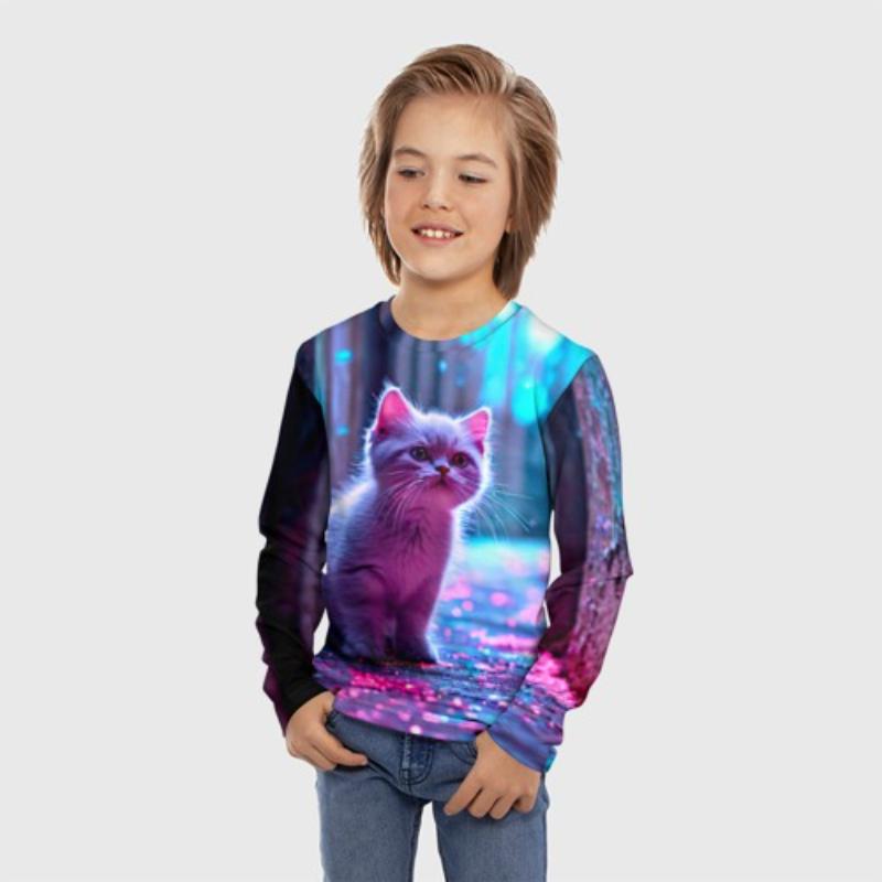 Children's Cartoon Lively Kitten Print Multi-color T-shirts Boys Cute Long Sleeved Soft Comfortable Top