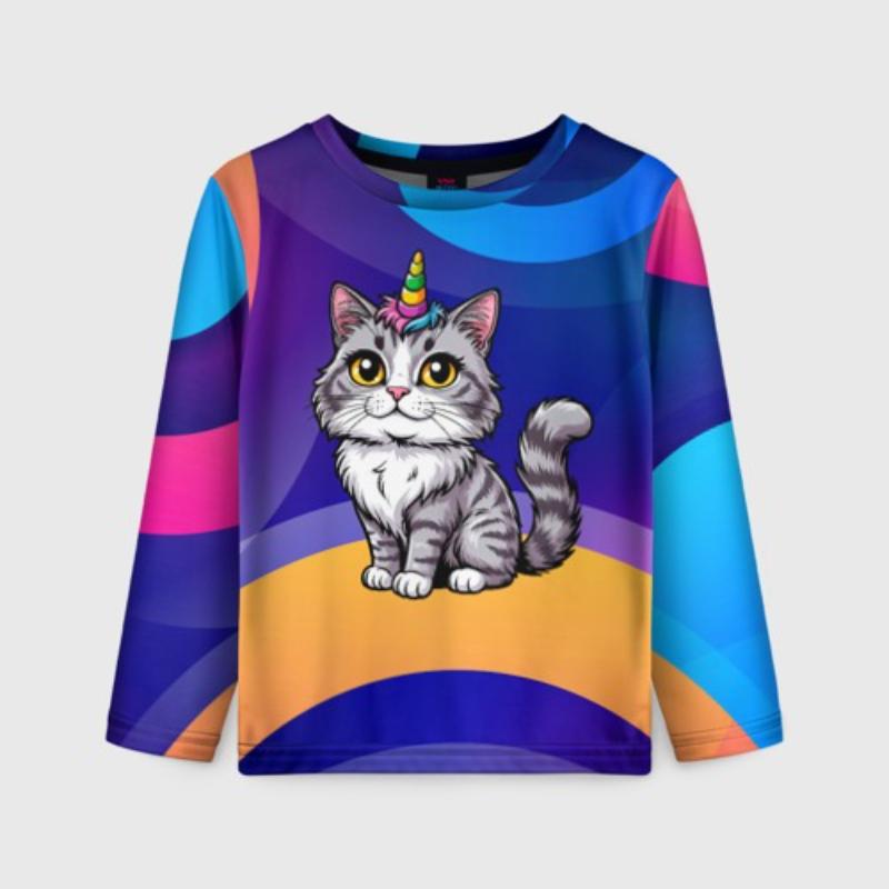 Children's Cartoon Animals Cute Kitten Print Colorful T-shirts Boys Long Sleeved Fashionable Soft Comfortable Top