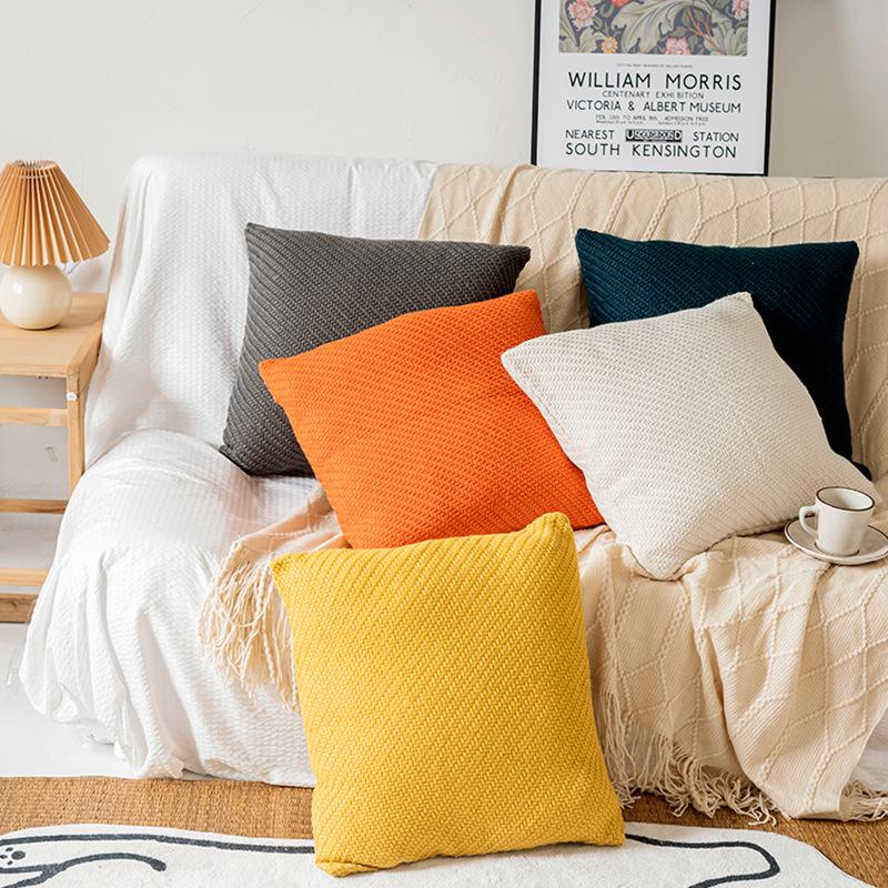 Nordic Style Knitted Pillowcase with Core Square Living Room Cushion Living Room Ins Light Luxury Sofa Cushion Cover