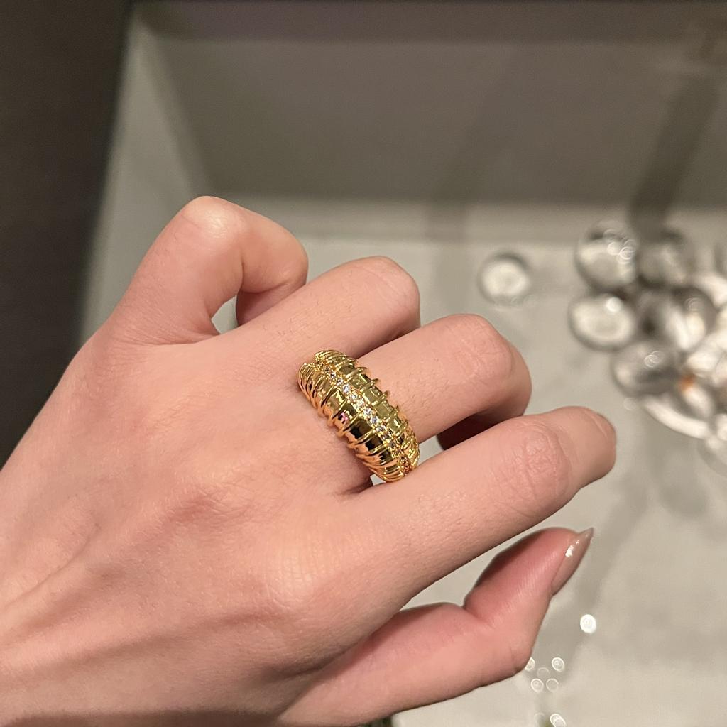 Light Luxury Zircon Geometric Open Stripe Ring Women'S Design Sense Premium Ring