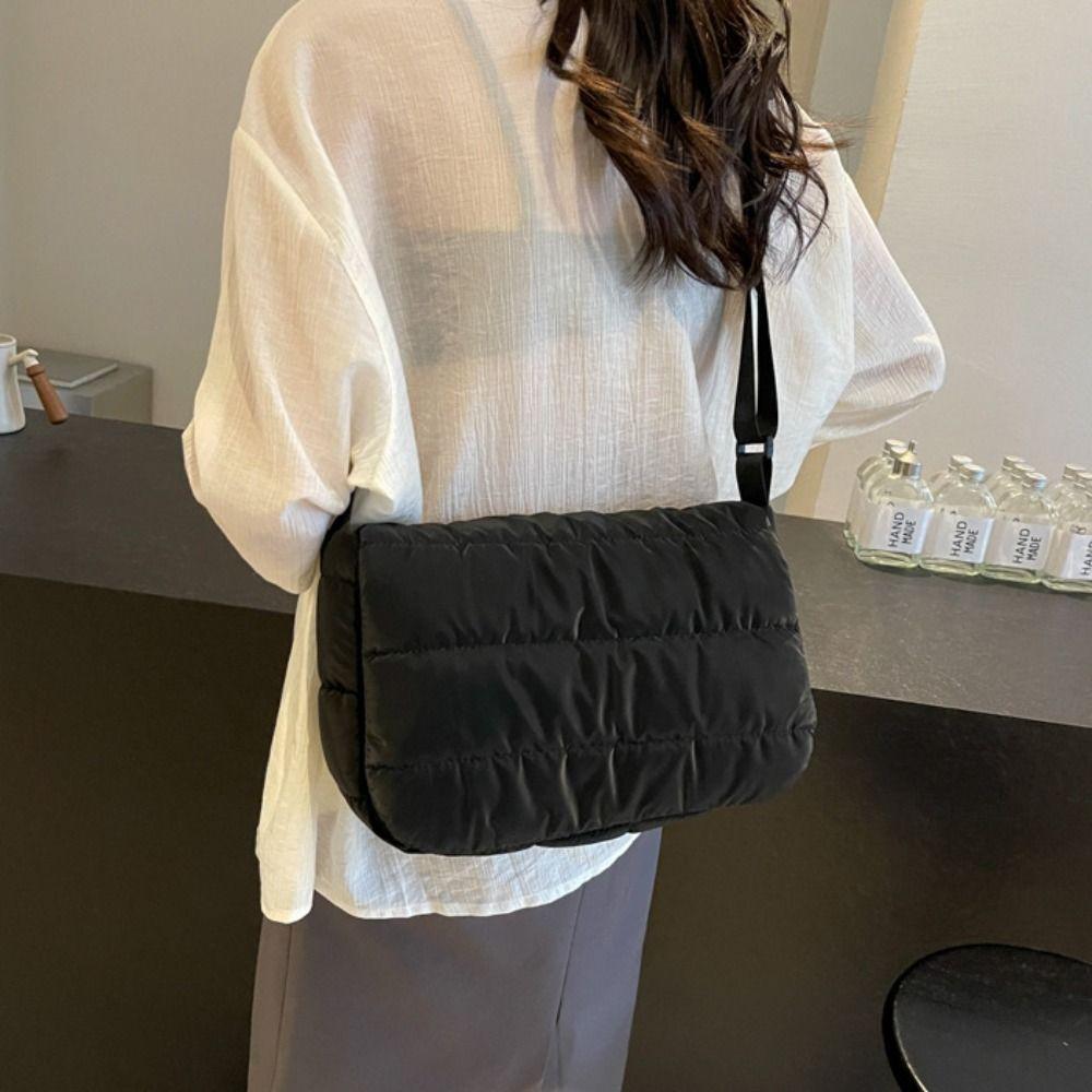 Square Nylon Padded Shoulder Bag Korean Style Cotton Padded Crossbody Bag Streetwear