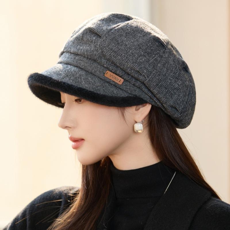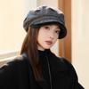 Autumn and Winter Women's Plaid Beret Casual Cold and Warm Windproof Velvet Thickened Octagonal Hat