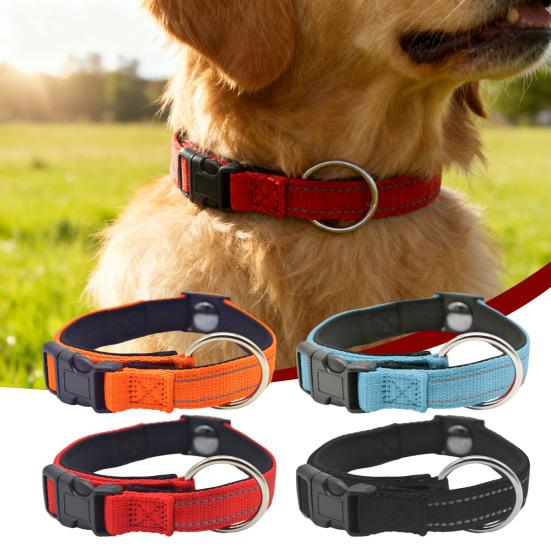 Enhance your dog's safety and style with this pet collar featuring reflective dot strips. The built-in reflective dot strips ensure visibility during nighttime walks, making your furry friend easily seen by drivers and pedestrians. Crafted from premium, durable fabric, this collar offers a comfortable fit with its soft, skin-friendly material that won't irritate your dog's skin.