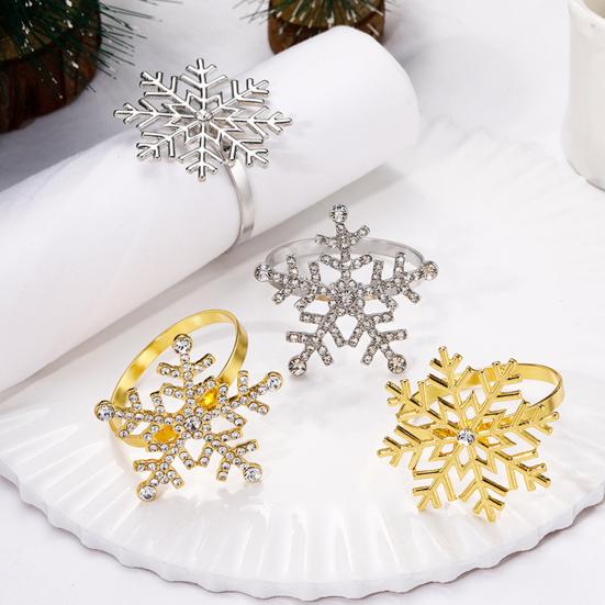 1/2/6Pcs Golden Metal Napkin Ring Faux Pearl Decor Snowflake Design Winter-themed Napkin Holders Weddings