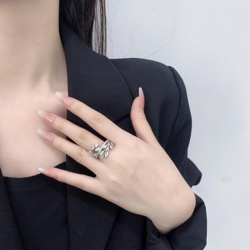 Light Luxury Winding Interwoven Leaf Ring Female Creative Personality Mosaic Zircon Trend Ring Index Finger Ring