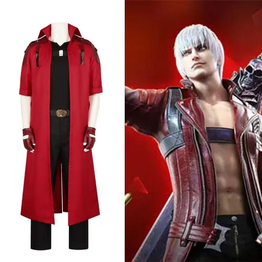 DMC 5 Dante Cosplay Wig Uniform Costumes Disguise for Adult Men Long Windbreaker Gloves Roleplay Outfits Halloween Carnival Suit