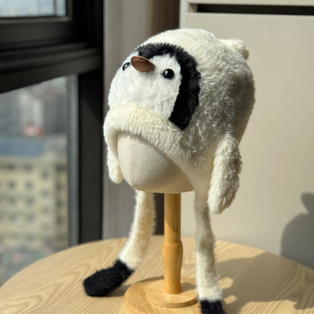 New Cute Penguin Plush Hat for Women In Autumn and Winter Thickened and Warm Ear Protection Hat Versatile Face Showing Small Knitted Pullover Hat