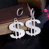Hip Hop Street Jewelry Copper Inlaid Zircon Dollar Symbol Earrings Gold Plated Full Diamond Personality Tide Ear Jewelry