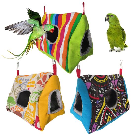 Pet Bird Parrot Soft Warm Striped Flower Hanging House Sleep Bed Cave Nests