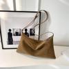 Women Suede PU Leather Large Capacity All-match Shoulder Bag Vintage Solid Color Casual Style Commuter Tote Bag KTY