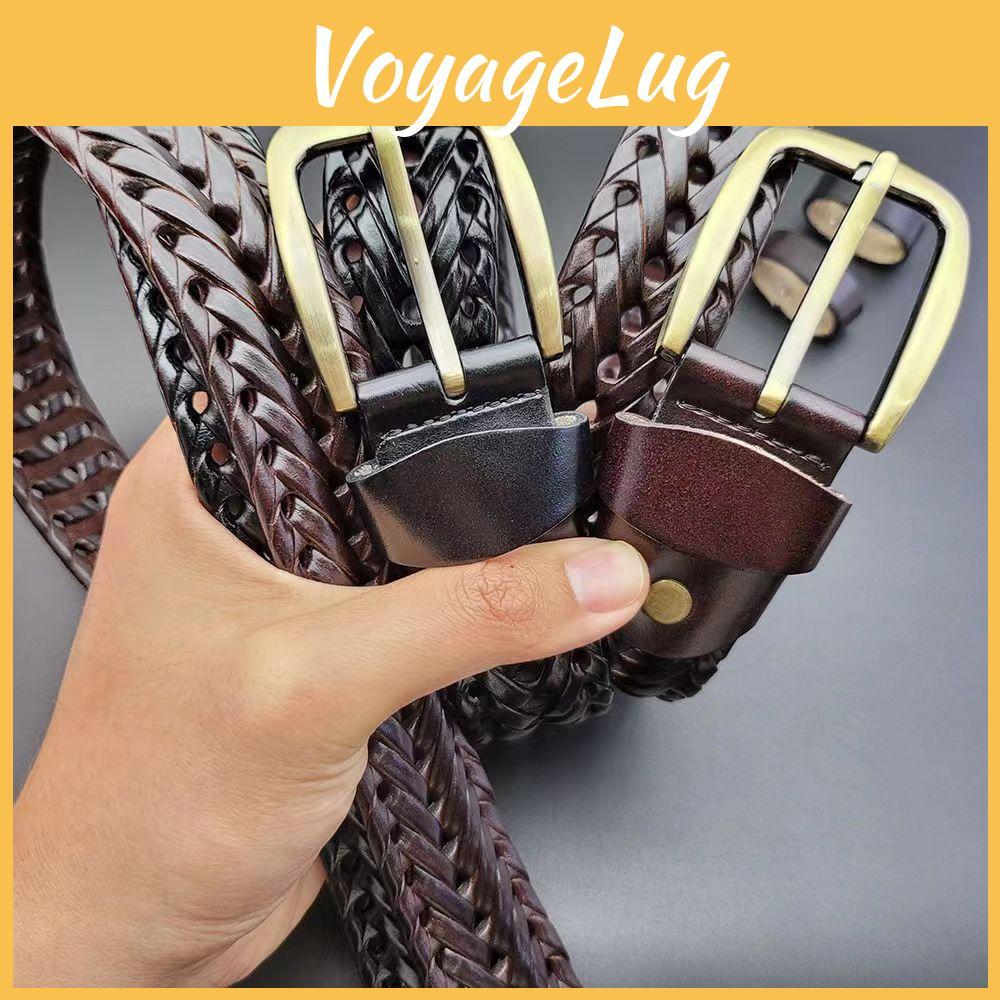 Woven Men Vintage Casual Leather Belt With Mesh Pattern And Antique Buckle