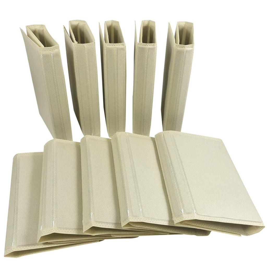 Material: Non-woven polyester fabric + PP board. Color: Beige. Pack of 10 in 3 sizes for women, men, and kids. Care Instructions: Washable, but wipe with a damp cloth.