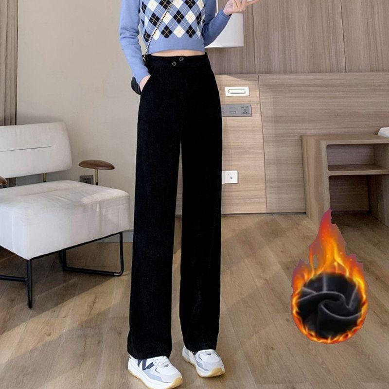 Plus Velvet Pants Women In Spring Autumn Corduroy Pants Loose High Waist Slim Straight Pants Women