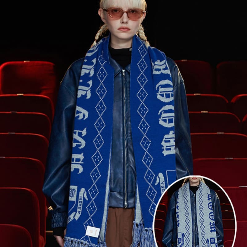 UNALLOYED GOTHIC LOGO MUFFLER / BLUE&GREY