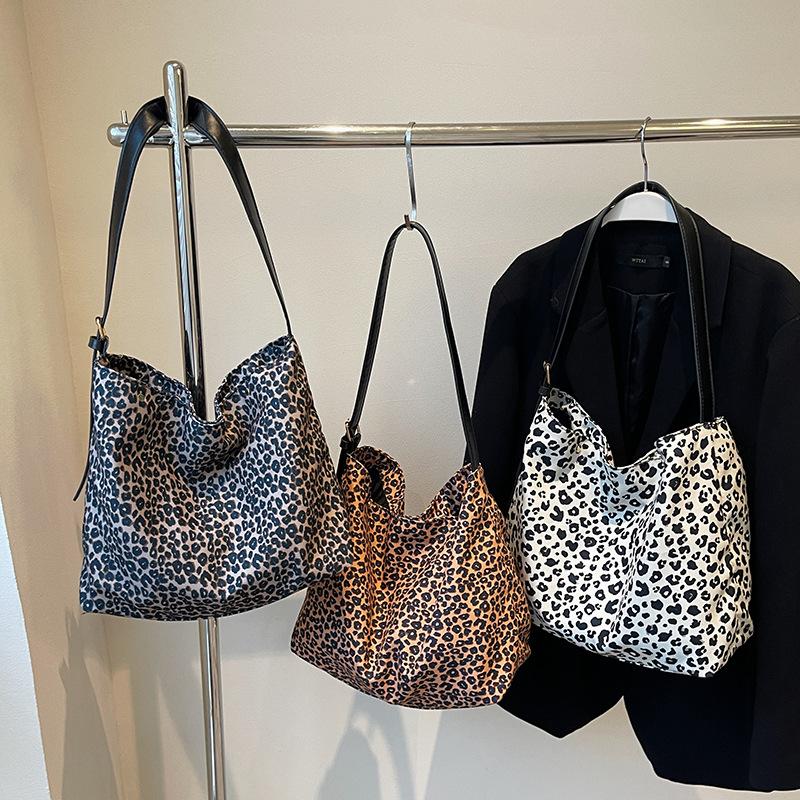 Leopard Print Canvas Bag, Women's Commute To Work, Large-capacity Shoulder Bag, Lazy Wind Messenger Bag, Student Handbag.