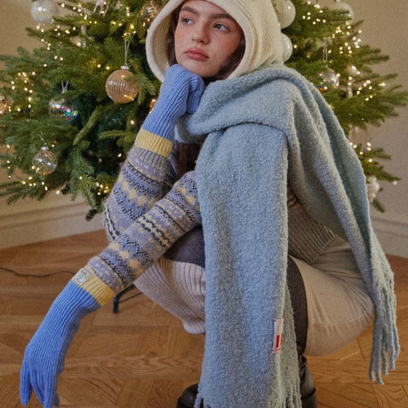 HAINT FLUFFY HEAVY Wool MUFFLER_4COLORS_SKY BLUE
