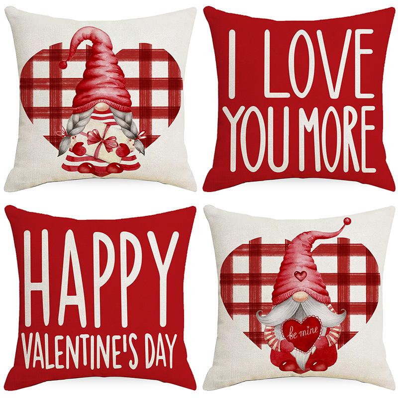 Valentine's Day Linen Pillow Cover Red Love Home Cushion Cover Cushion Home Decor