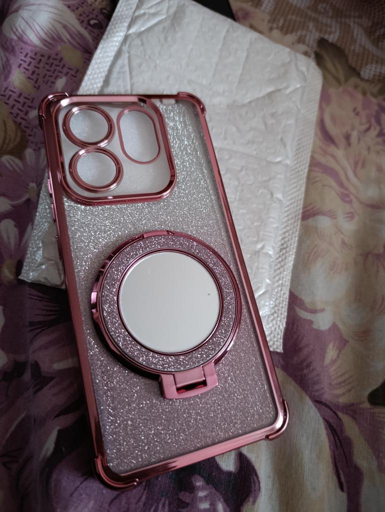 Glitter Shockproof Silicone Case For Xiaomi Redmi 14C Note 14 Pro Plus 4G 5G Note 14S Mirror Magnetic Holder Stand Soft Cover