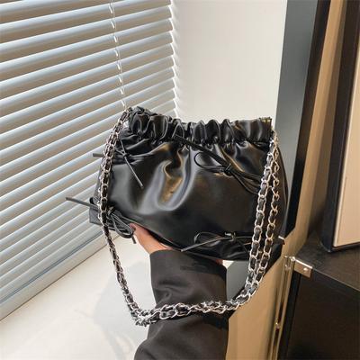 New Pleated Shoulder Bag Chain Fashionable Bucket Bag High Value Versatile Large Capacity Light Luxury Messenger Bag Women