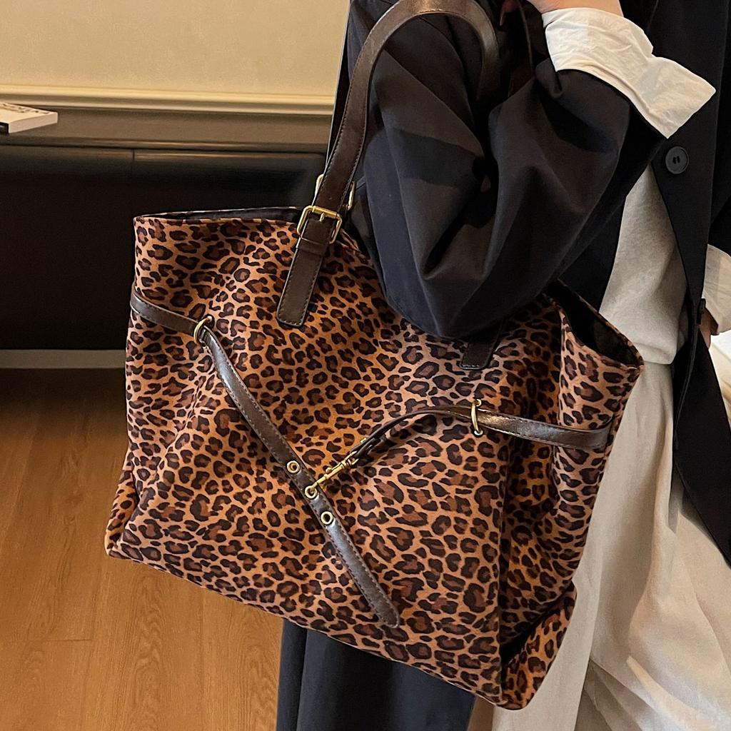 Korean Leopard Print Tray Extra Large Bag Women's 2025 New Fashion Retro Shopping Bag Large Capacity Casual Shoulder Bag Tide