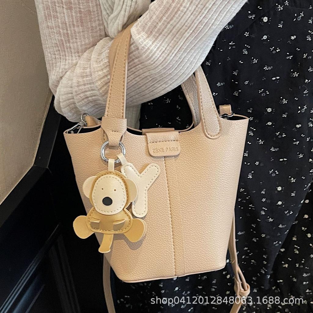 Litchi Pattern Foreign Gas Bucket Bag 2025 New Popular Handbag High-end Shoulder Bag Fashionable Commuter Messenger Bag
