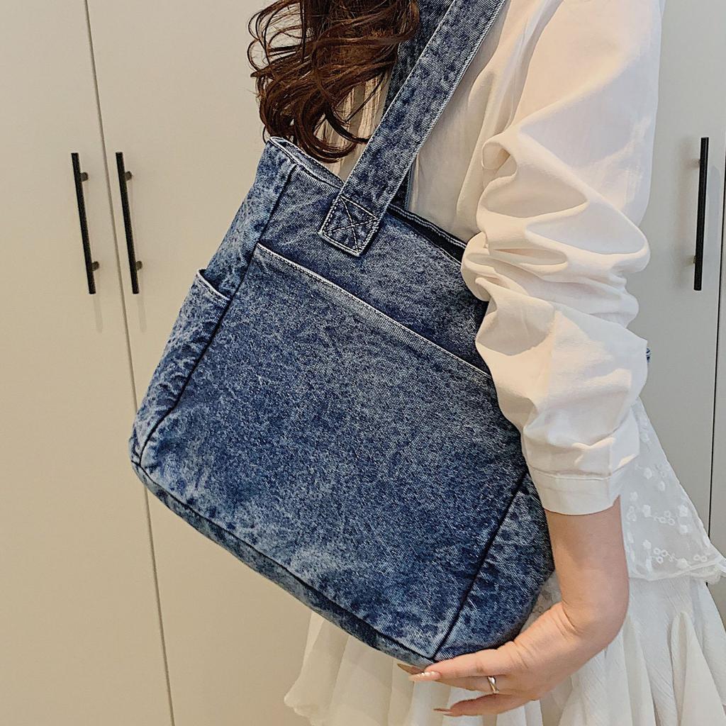 2025 Japanese Washed Denim Cloth Shoulder Bag Women's Literary Large-capacity Underarm Bag Trendy Fashion Student Schoolbag