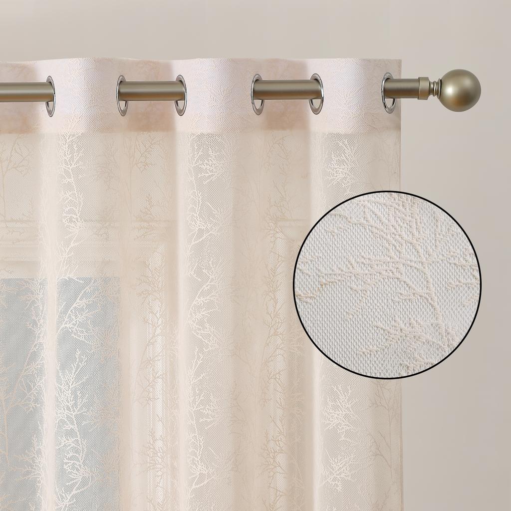 White French Tree Sheer Curtains Beige Linen Textured Curtains 84 Inch Long 1 Panels for Living Room