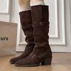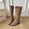Korean Version Retro Suede Belt Buckle Thick Heel Boots Women's Autumn and Winter Wear Classic Wide Circumference Thin Long Boots