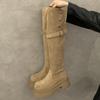 Korean Version of Fashion Two Wear Folded Platform Boots Children 2025 Autumn and Winter New Thick Heel Knee Knight Boots