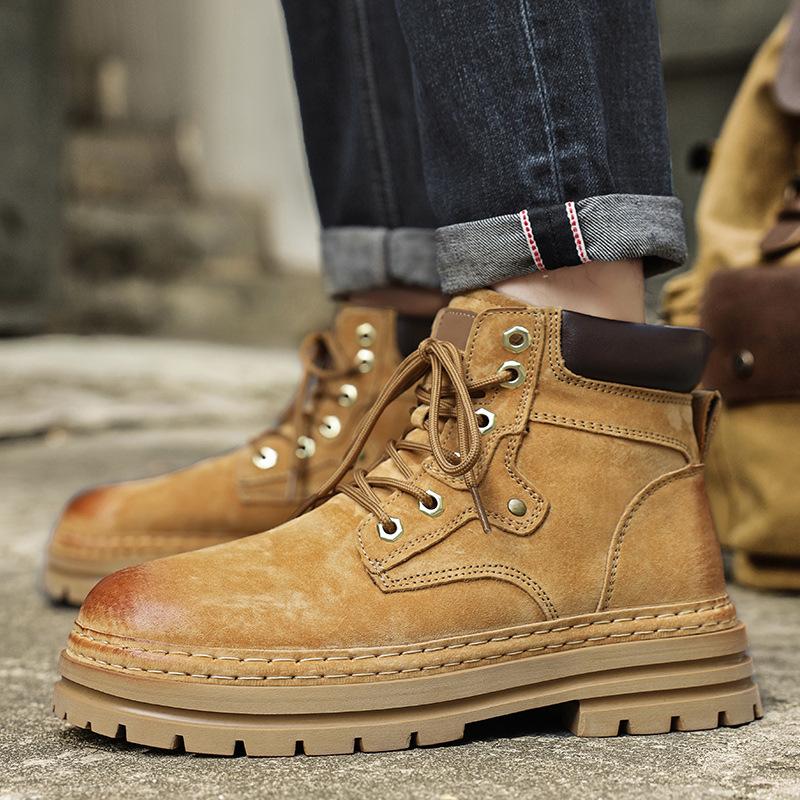 Martin Boots Men's Leather Rhubarb Boots Autumn and Winter British Style High-top Medium-top Tooling Velvet Cotton Shoes Snow Men's Boots