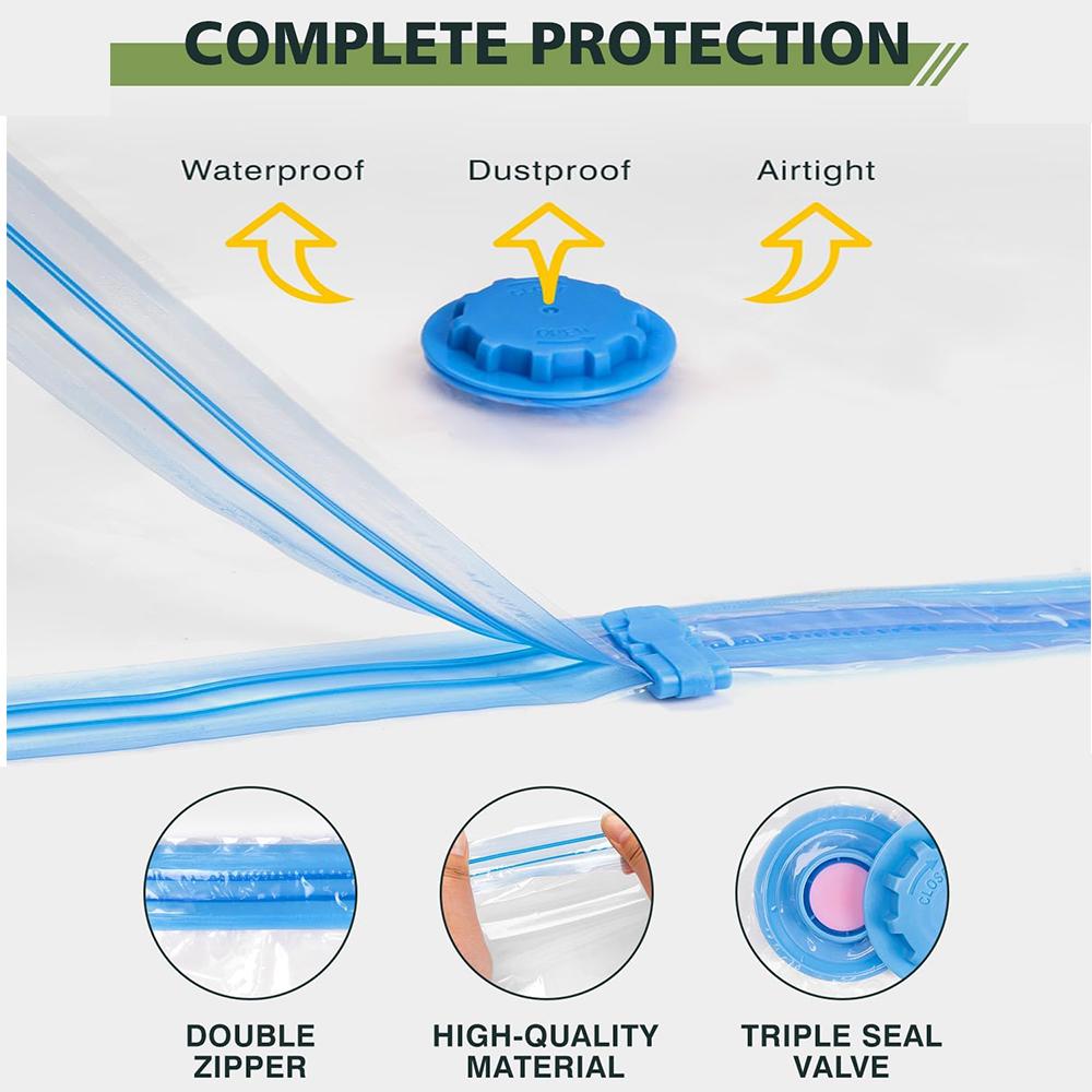 15 Pack Vacuum Storage Bags, Space Saver Bags Compression for Comforters and Blankets, Sealer Clothes Storage Travel Organizer,