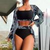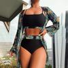 Women's Split Three Piece Set High Waist Long Sleeve Blouse Sunscreen Bikini Sets