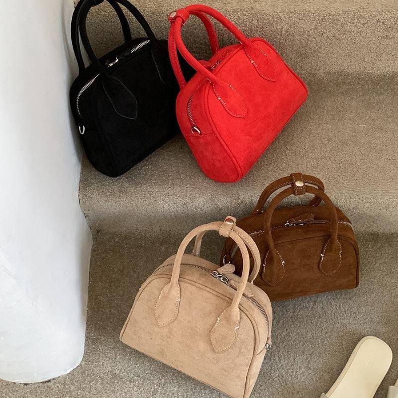 New Portable Bowling Bag Hand Carry Suede Bag Simple Versatile Single Shoulder Messenger Bag Women