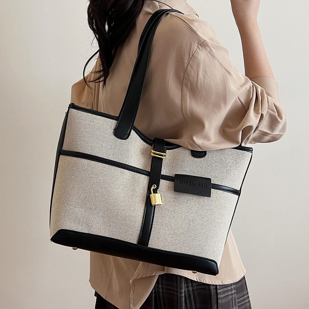2025 New Niche Contrasting Colors Fashionable Large-capacity Tote Bag Canvas Hand Bag Shoulder Bag Messenger Bag