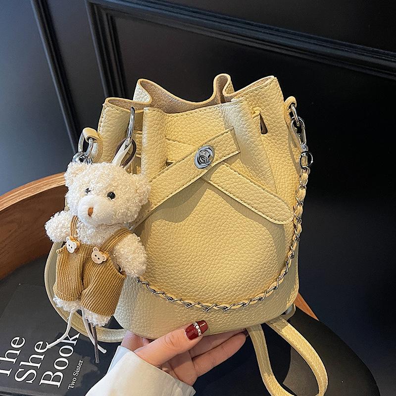 Trendy New Products, High-quality Lychee Pattern Portable Bucket Bag, Women's Commute To Work, Simple Style Versatile Messenger Child and Mother Bag