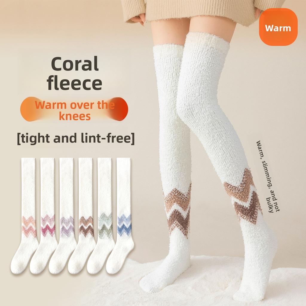 White Over-the-knee Socks, Women's Winter Fleece Thickened Long Socks, Super Thick Home Warm Sleep Socks, Coral Fleece Long Socks