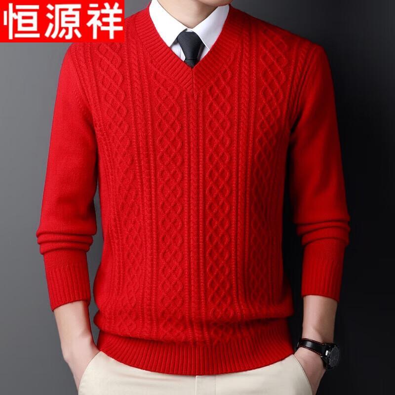 Hengyuanxiang Men's Thick V-Neck Knit Sweater