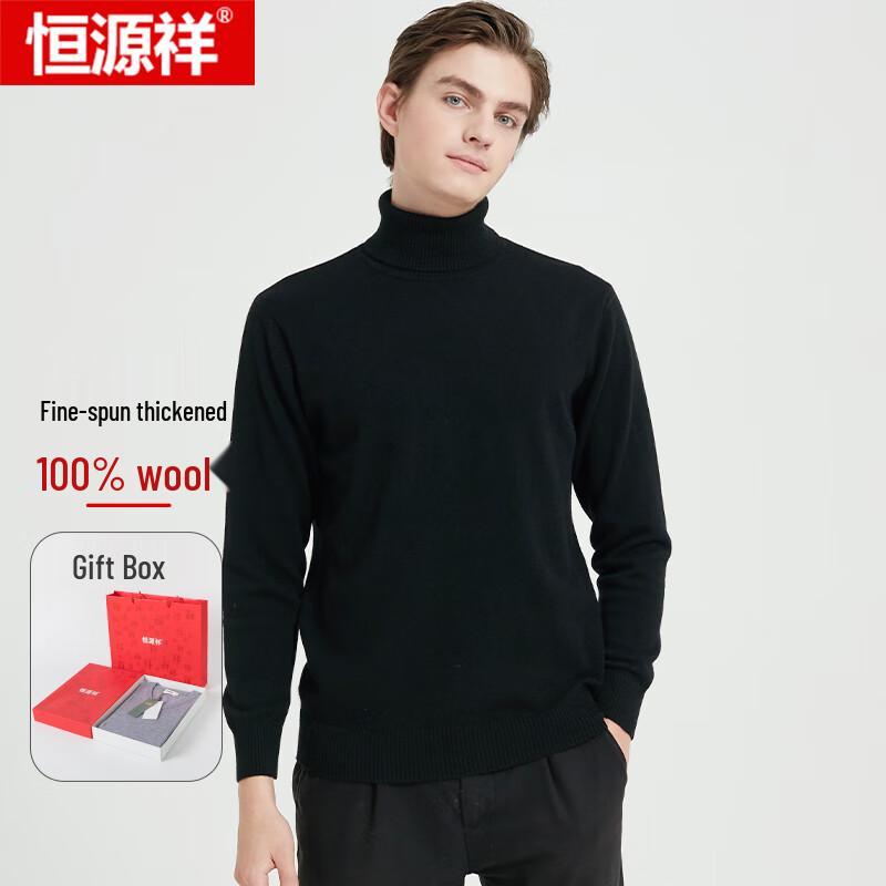 Hengyuanxiang Men's 100% Pure Worsted Wool Thick Turtleneck Sweater