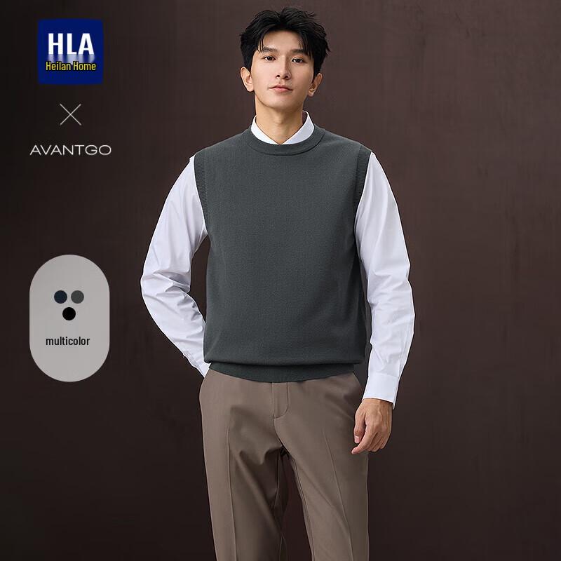 HLA Men's Business Casual Sleeveless Round Neck Knitted Vest