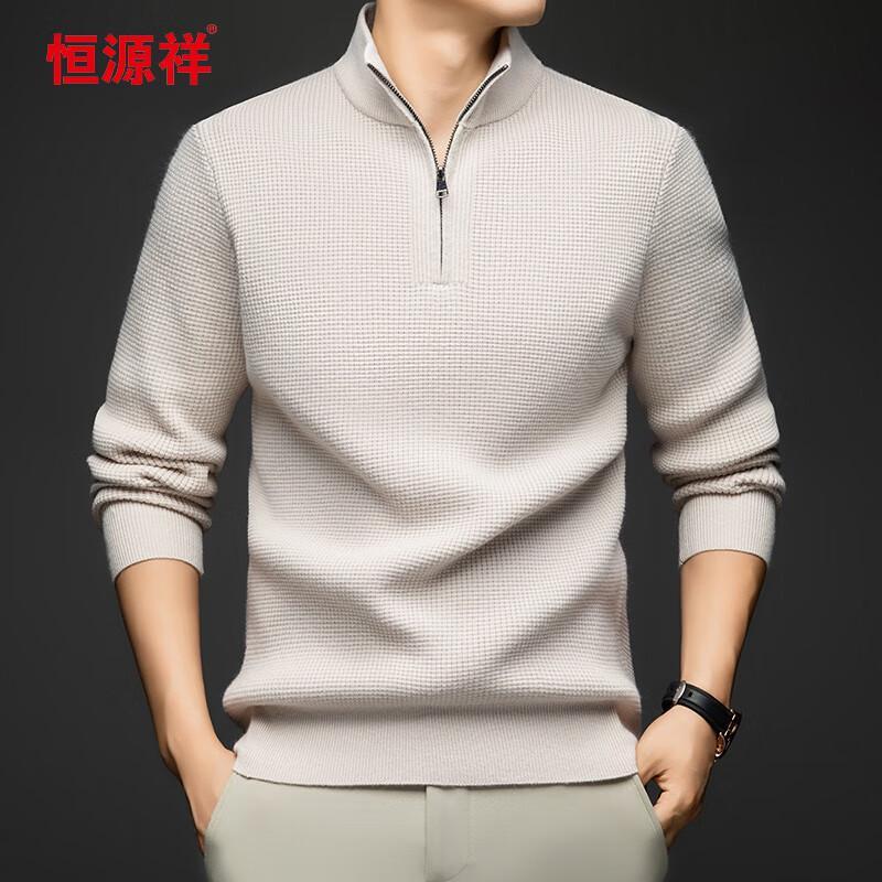 Hengyuanxiang Men's Waffle Half-Zip Knit Sweater