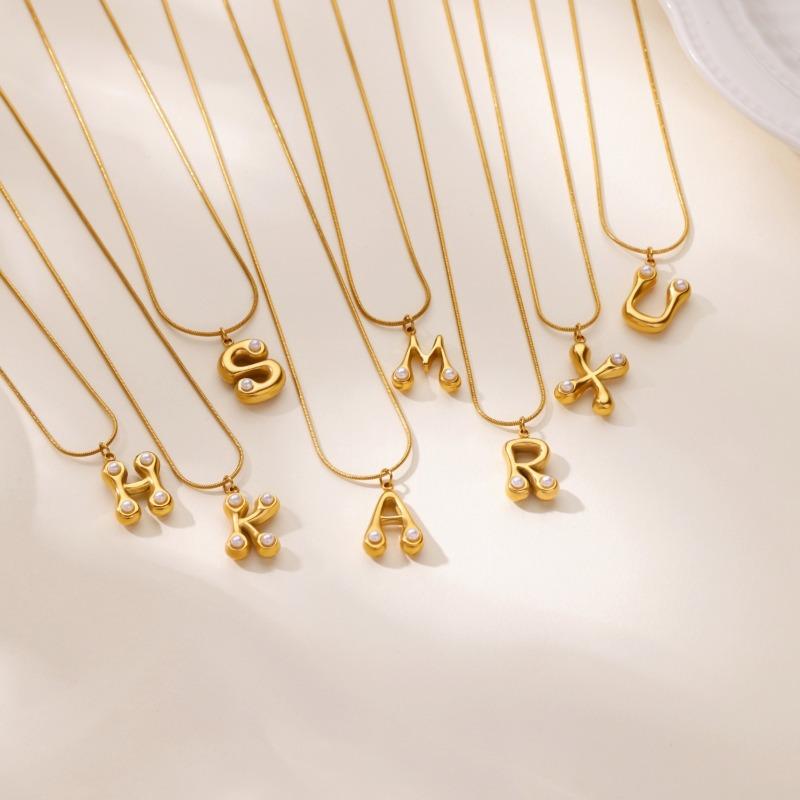 Vintage Stainless Steel Glossy Letter Necklace Female Zircon Cute Bubble English Letter Pendant Necklace New