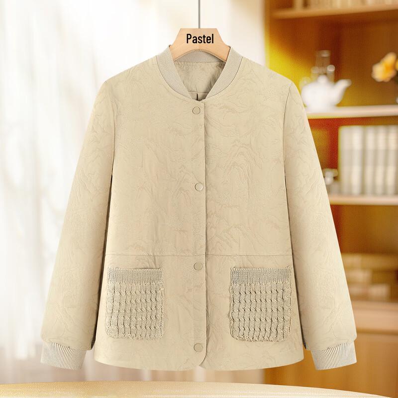Paste Mid-Aged Women's Padded Baseball Collar Short Jacket