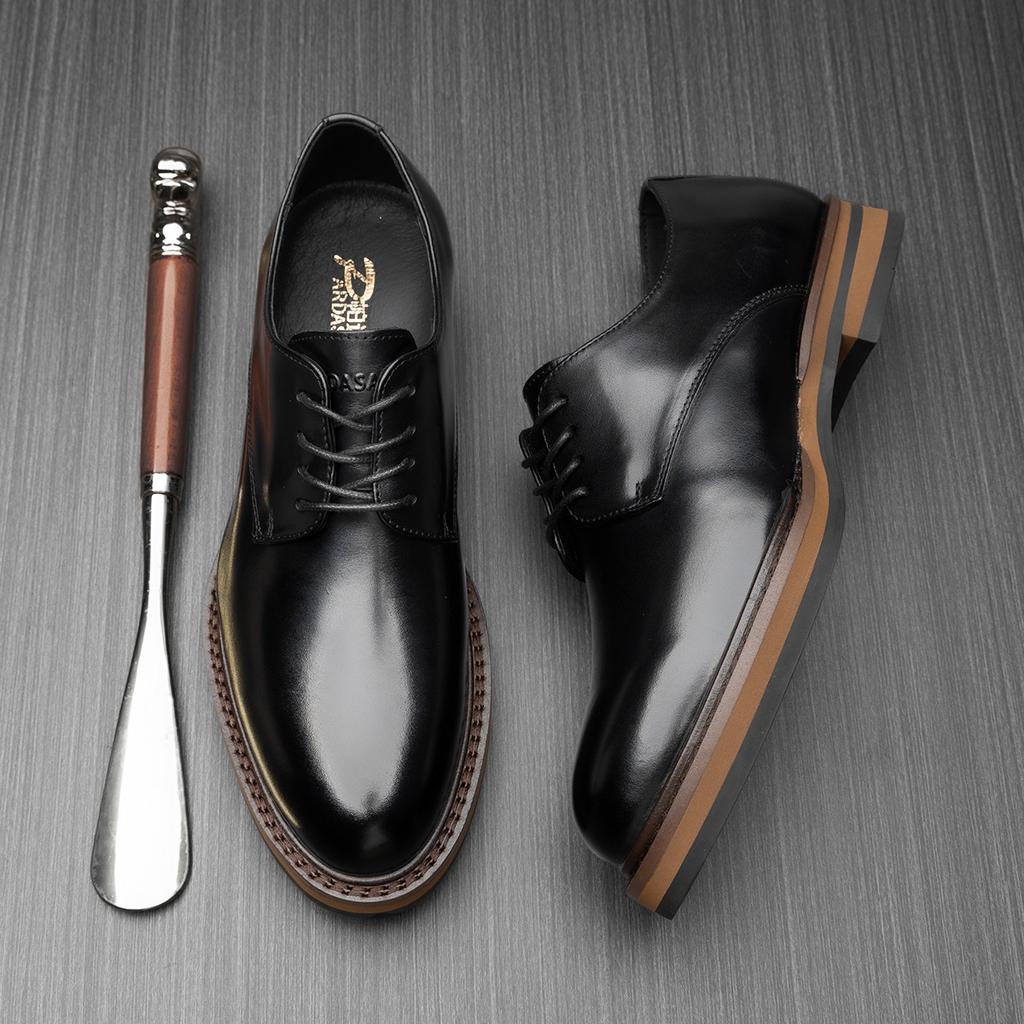 2025 Direct Supply of British Retro Casual Leather Shoes Men's Genuine Leather Business Dress Thick-soled Wedding Groom Derby Shoes