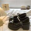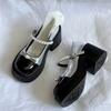 Xiaoxiangfeng French High-heeled Mary Jane Small Leather Shoes Women's Skirt Bow Pearl Black and White Color Matching Thick Heel Single Shoes
