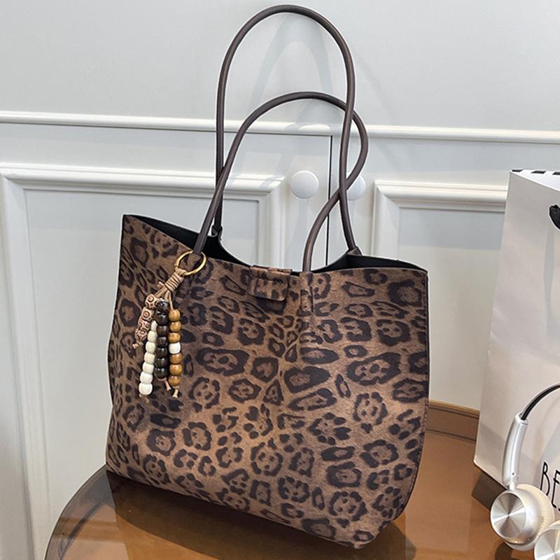 Casual Large-capacity Bag Women's 2025 Autumn New Tongle Shoulder Bag Popular Leopard Print Portable Tote Bucket Bag