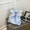 Korean Plaid Embroidered Flower Bag Women's 2025 New Casual Drawstring Canvas Bag Commuter Shoulder Crossbody Bucket Bag