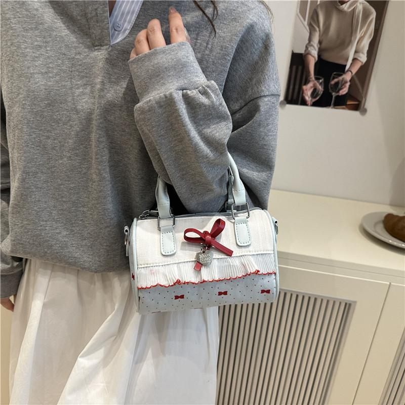 Korean Cute Bow Handbag Women's 2025 Summer Sweet Fashion Lace Edge Versatile Shoulder Messenger Bag