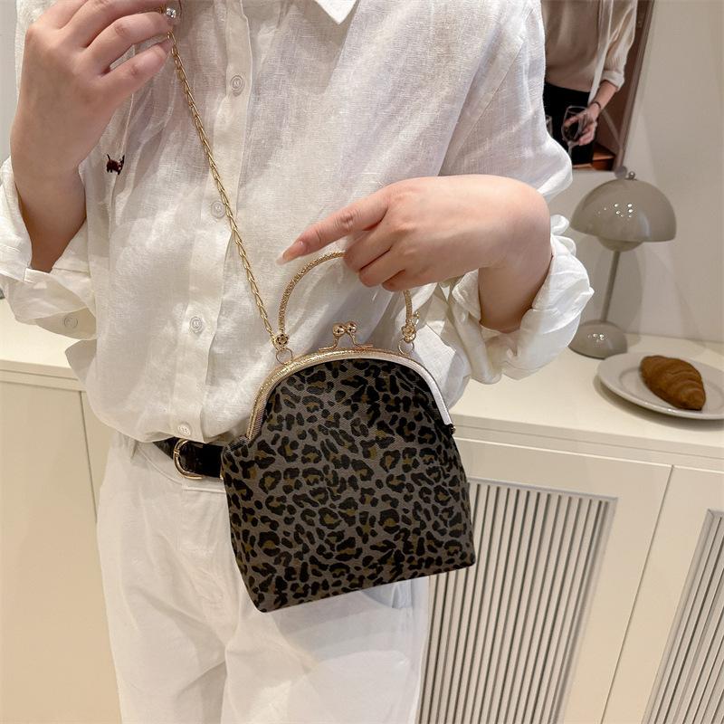 2025 New Retro Niche Design Handbag High-end Leopard Print Chain Single Shoulder Crossbody Gold Bag Female Tide