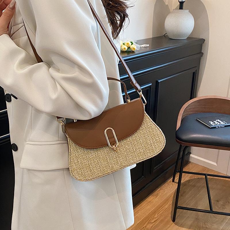 Holiday Style Woven Women's Bag Korean Version Messenger Bag Fashion Bag Texture Small Square Bag Handmade Straw Bag Styling Small Bag