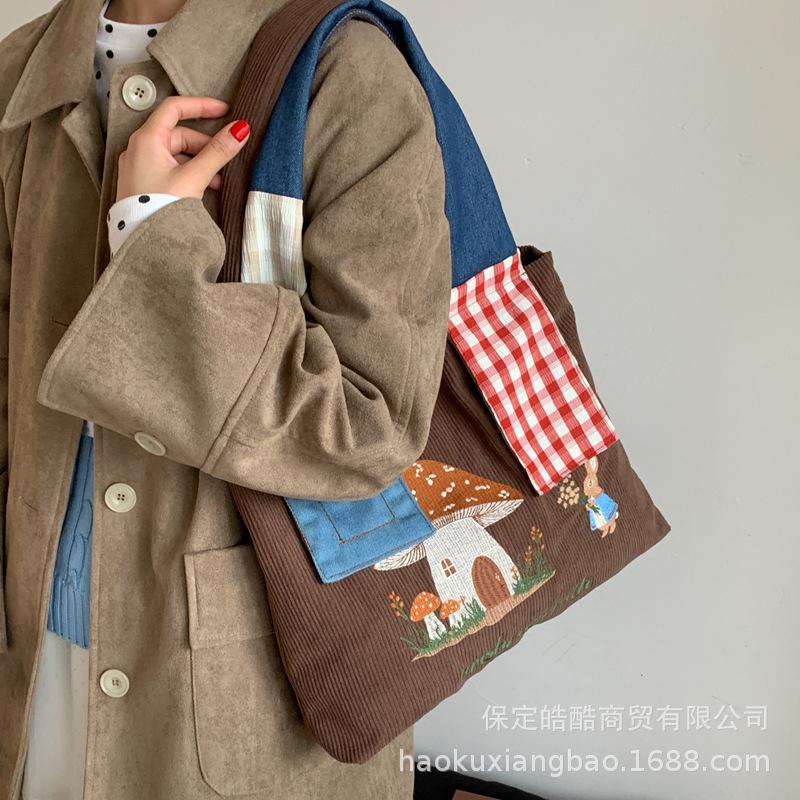 Cute Cartoon Tote Bag Women's New Embroidered Armpit Bag 2025 Autumn and Winter Versatile Fashion Large Capacity Shoulder Bag